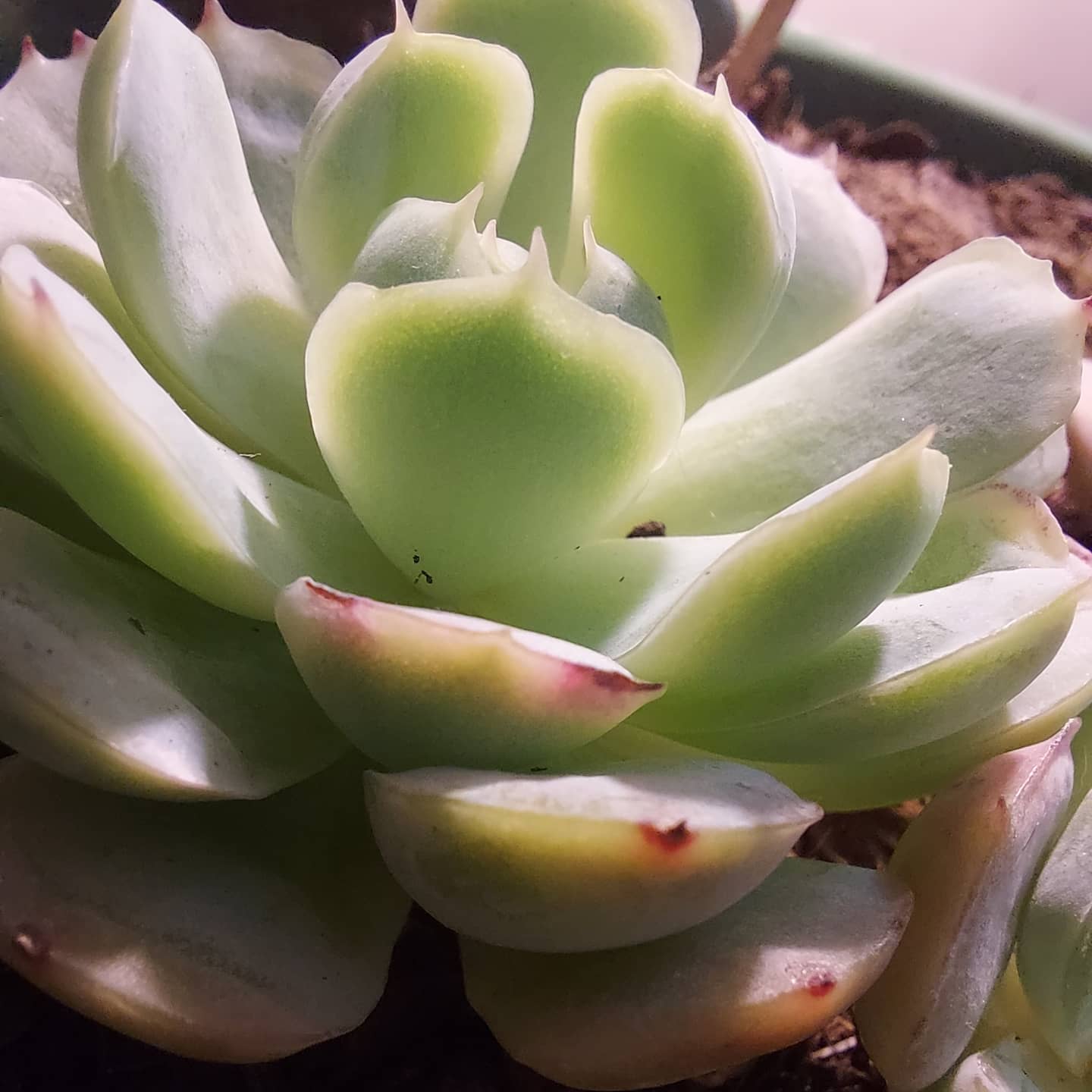 Saya paling demen sama sukulen yang di ujung daunnya atau pinggir daunnya berwarna merah jambu atau bertitik merah jambu. Imut banget!