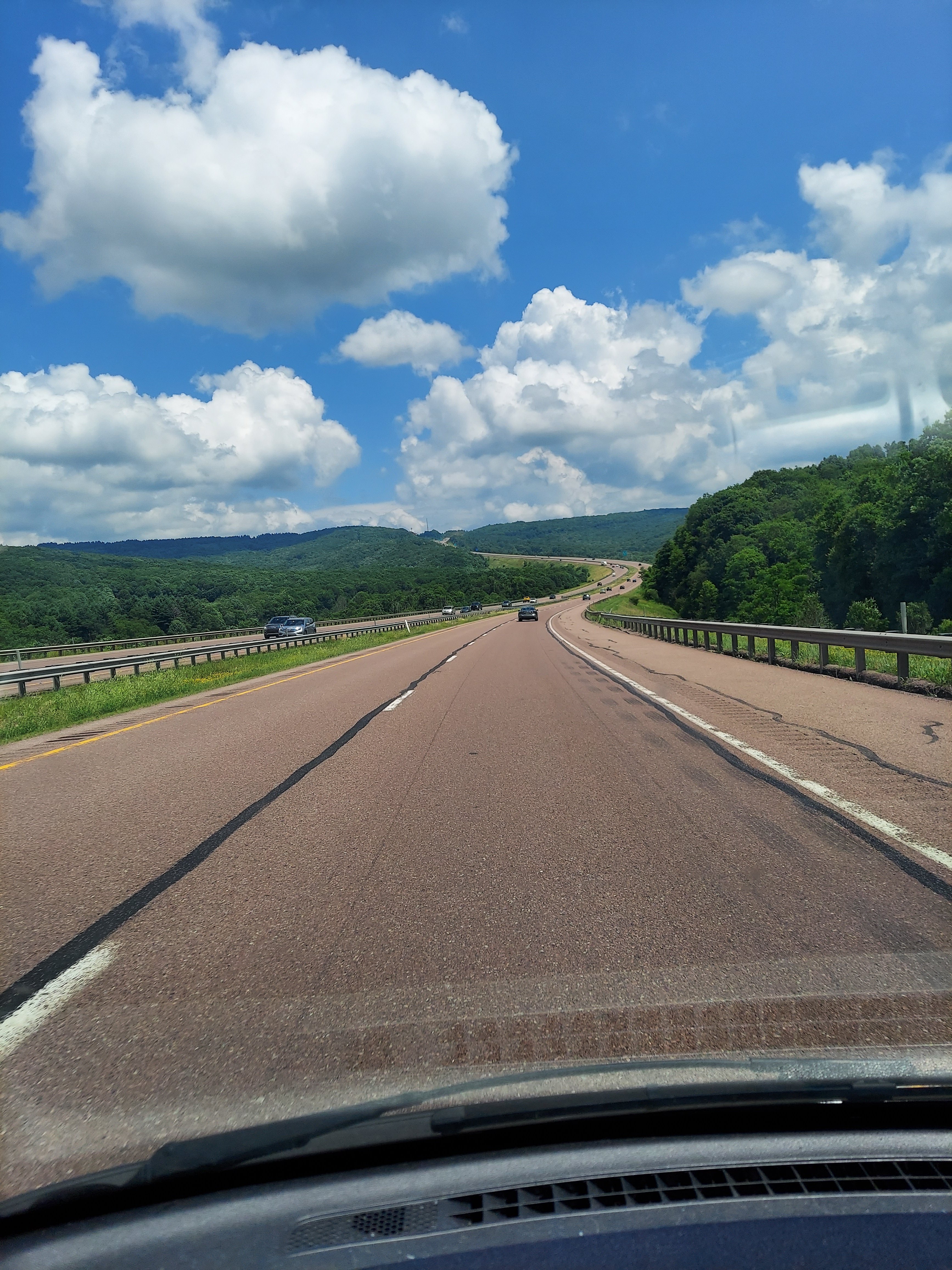 Hari Kamis sore setelah kerja setengah hari, saya, anak saya dan anjing kami berangkat. Tujuan kami adalah sampai ke West Virginia , nginep beristirahat buat besok paginya melanjutkan perjalanan lagi .