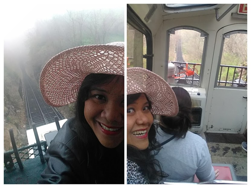 Saya maunya pergi ke air terjun Ruby dan Rock City (karena 3 atraksi ini bisa dipaketin) cuma tidak ada waktu. Jadi inclined railway ini, pengunjung naik ke gerbong kereta selama 1 mil (1.6 kilo) dibawa ke Lookout Mountain yang bikin deg-degan adalah relnya itu terjal banget, 72.7%..haiyaaa!!