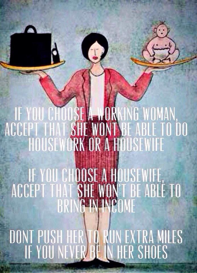 Well, sebetulnya tidak usah jauh-jauh, ibu saya dulu juga perempuan bekerja, beliau malah bekerja 2 pekerjaan. Tapi koq saya tidak merasa sanggup ya berlakoni seperti ibu.