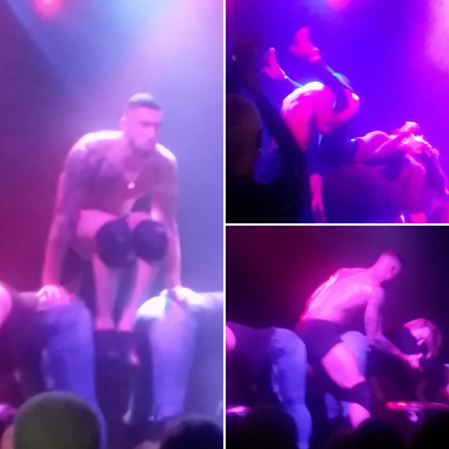 Si penari berlagak seakan-akan melakukan adegan ranjang di panggung.