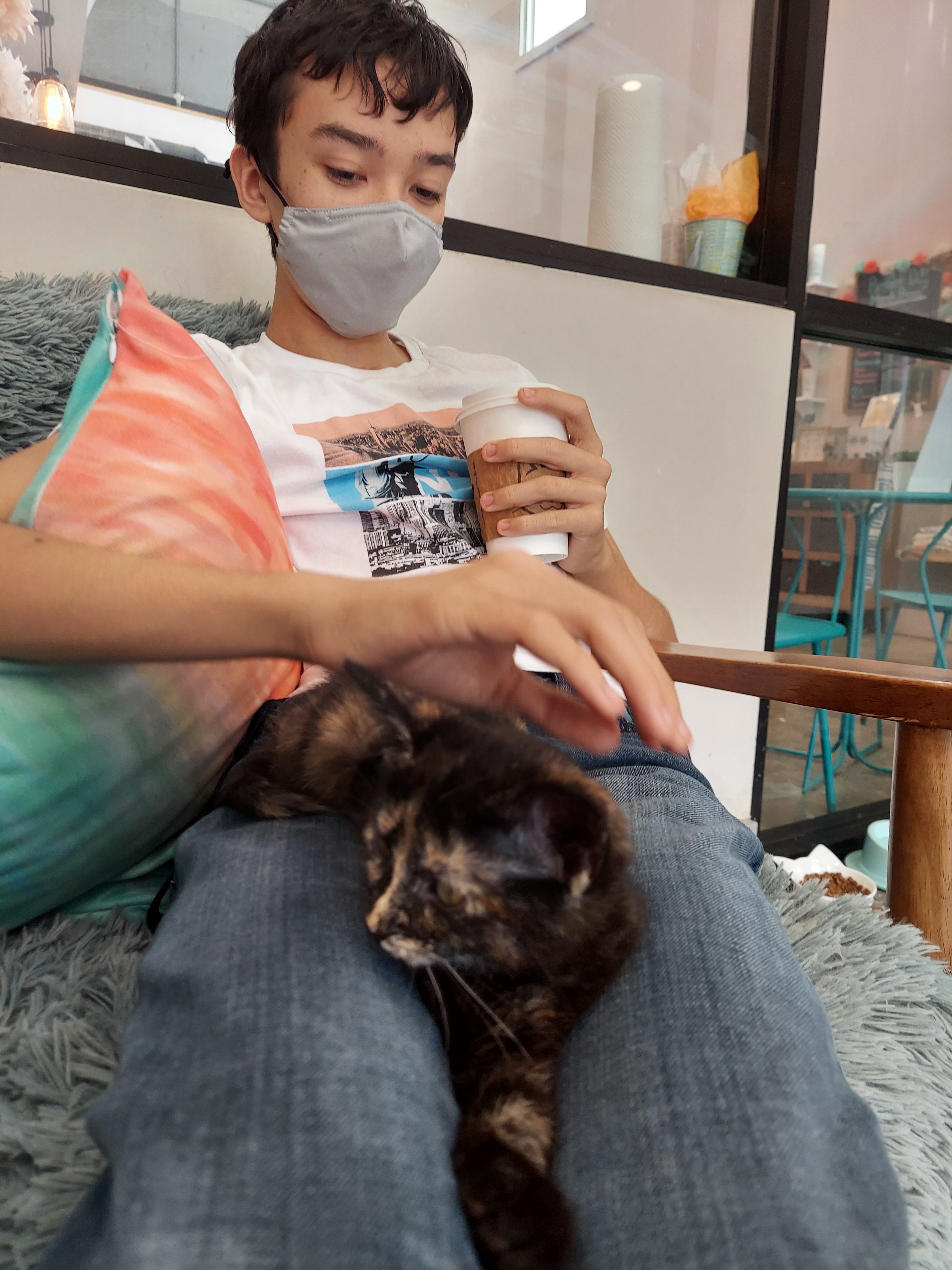 Setelah kucing kami wafat baru2 ini, kami ngerasa belum siap untuk mengadopsi kucing baru, tapi saya koq kangen main2 sama kucing? Saya teringatlah sama kafe kucing yang kami pernah lewati.