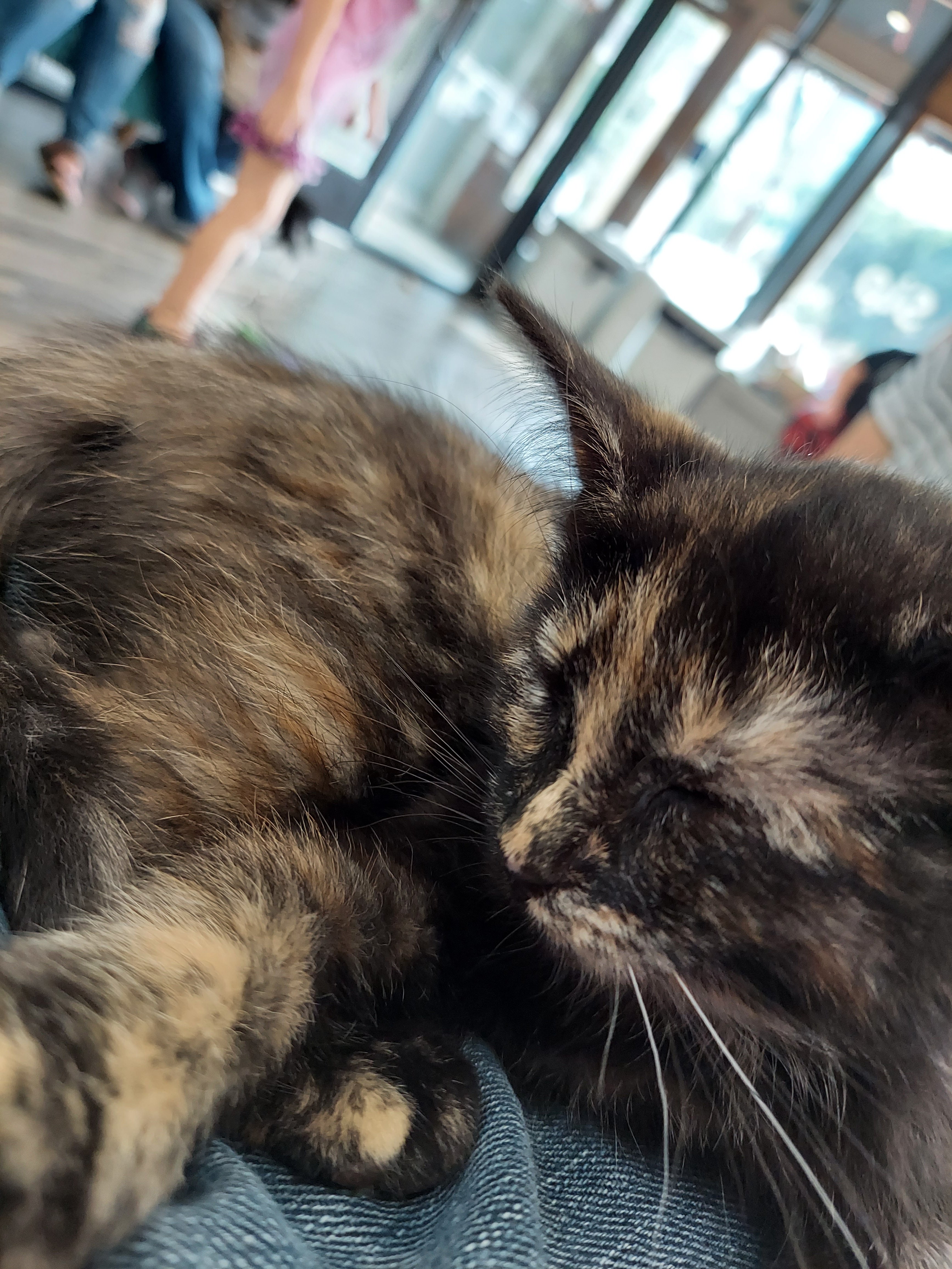 Ya ampun…gemes banget! Ada sekitar 10 bayi2 kucing sliweran di ruang kaca. Ada yang tiduran, ada yang ngumpet di pojok, ada yang bawaannya mau bobo sama pengunjung.