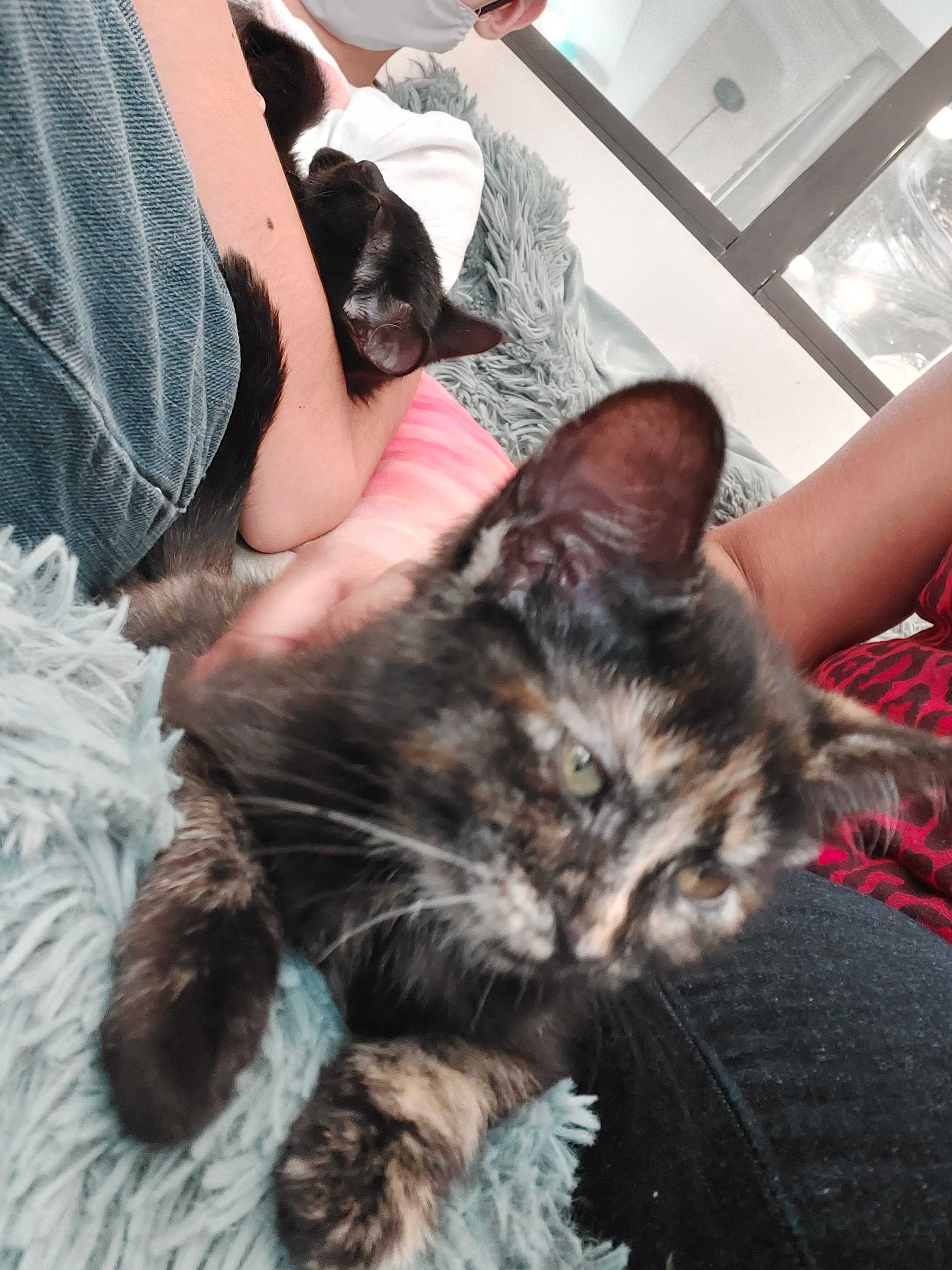 Bayi2 kucingnya juga macam2, ada yang tabby hitam, abu2, ada tortoise shell, ada yang hitam pekat, ada yang abu2 dengan semburat merah jambu. Rata2 anak2 kucing ini masih cilik banget! Menurut pengurus, rata2 umur anak2 kucing di tempat mereka itu 2 sampai 4 bulan