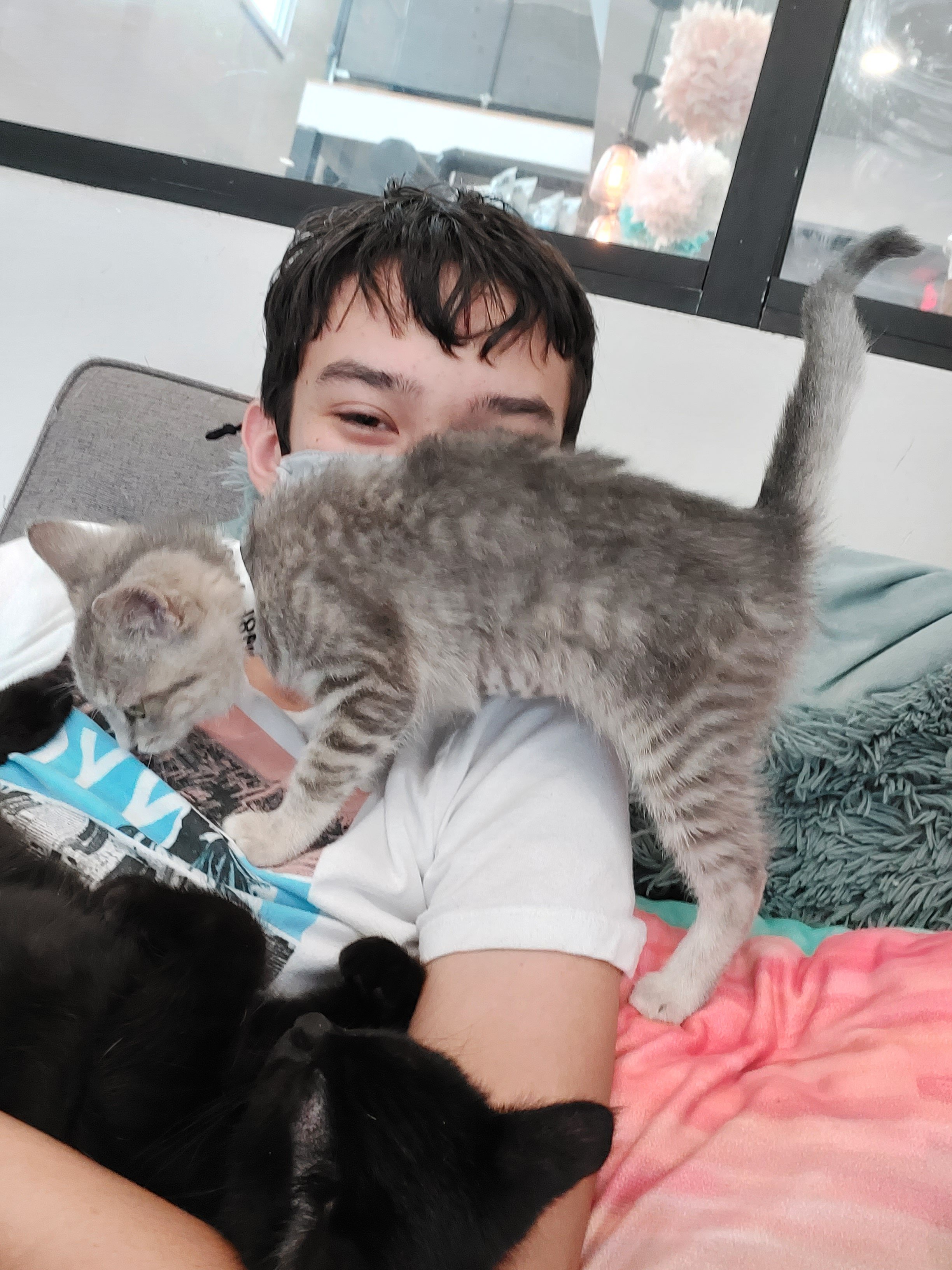 Demi, kucing cewe warna abu2 mudaDemi manjat2 anak saya, sementara Twizzler bobo dengan nyenyaknyaHalo. Saya TootsieTootsie boboZeusLupa namanya..Saya naksir sama pola bulunya..Kayak semburat merah jambu gituTootsie ngasoTwizzler